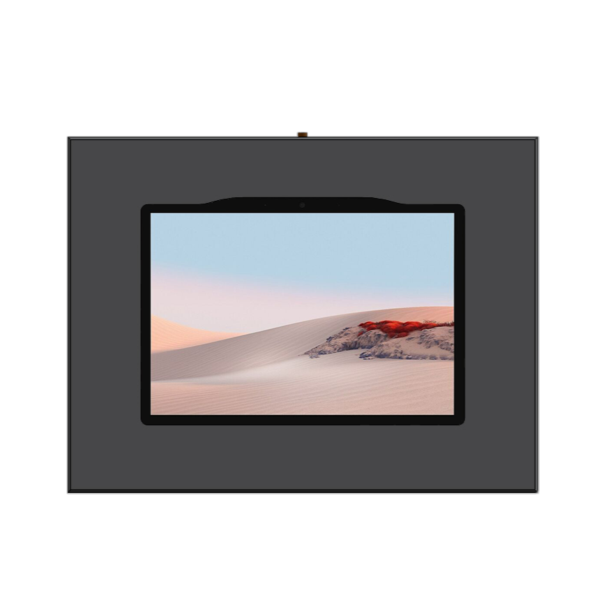 De deksel is afsluitbaar met het ingebouwde cilinderslot. De tablet kan zelf naar keuze in portrait of landscape gemonteerd worden (vaste montage).